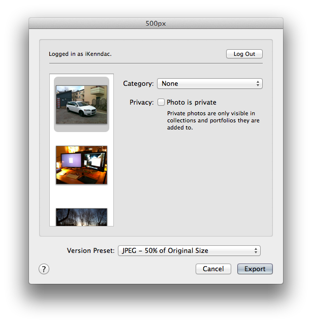 It requires Mac OS X 10.7 (Lion) and Aperture 3.x, and do bear in mind that I made this in less than 48 hours, so it may be buggy and it’s certainly light on features. But, it gets my photos directly from Aperture into 500px, so I’m happy!