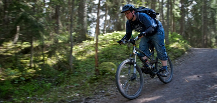 This has already come up trumps — one of my favourite sections of trail in the area was found with this method. The entrance to it is a tiny, root-covered path with a “No horses” sign on it, but it opens out to a fantastically fun, fast, and sweeping section of trail that you can see me on a bit further up the page.