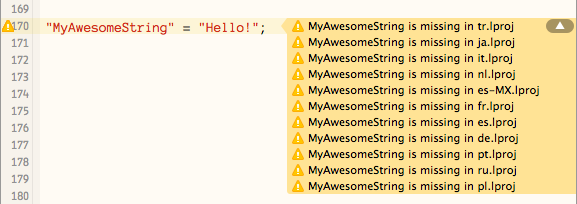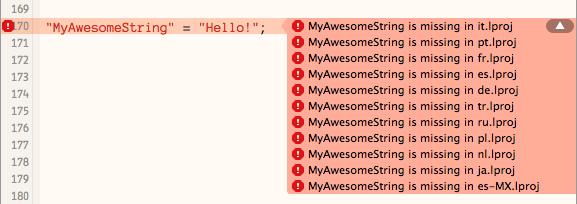 However, these checks only worked on our “master” .strings file — the one strings get added to first, typically in Base.lproj or your local development language.