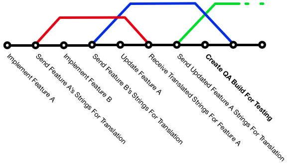 Since this process is very asynchronous, we quite often bump into problems caused by out-of-sync translations while testing. This is normally not too much of an issue, but it’s a waste of everyone’s time if we give a build to a tester in another country and get a report back that some translations are missing.