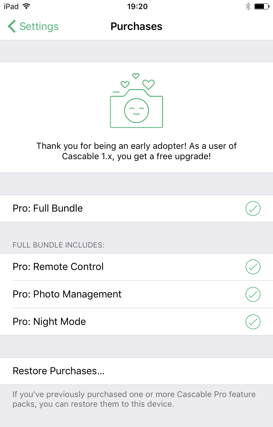 I believe that Cascable is a pro-level tool and should command a pro-level price — particularly for a niche app in the physical photography sector. Yes, $25 is a huge barrier to entry on mobile, and our 1.x sales show that. However, the problem we need to solve is showing users that the app is worth the price it commands.